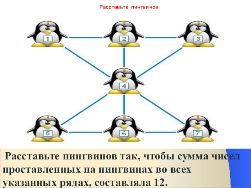 Расставьте пингвинов так, чтобы сумма чисел проставленных на пингвинах во