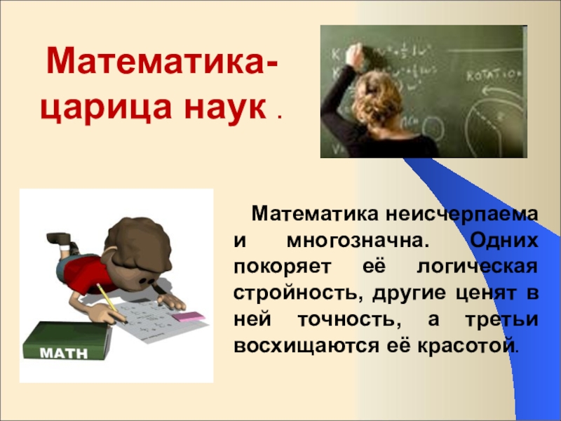 Математика неисчерпаема и многозначна. Одних покоряет её
