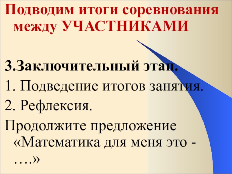 Слайд 30Подводим итоги соревнования между УЧАСТНИКАМИ