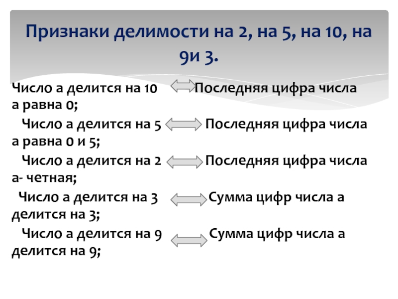 Признаки делимости на 2, на 5, на 10, на 9и 3.