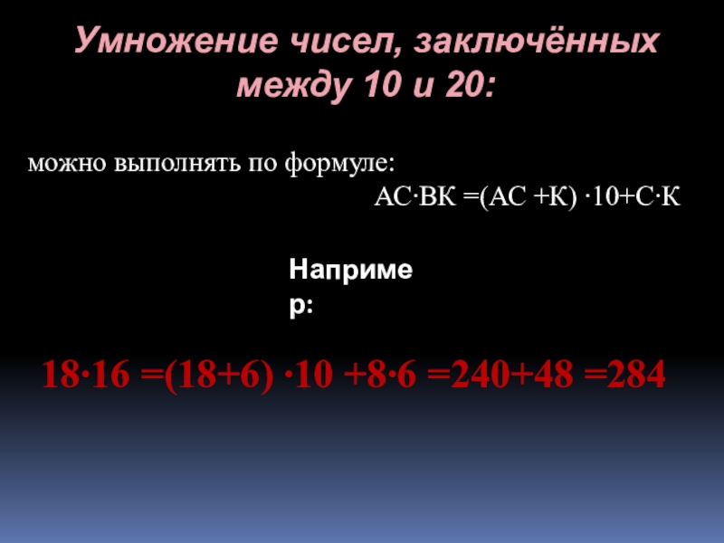18∙16 =(18+6) ∙10 +8∙6 =240+48 =284