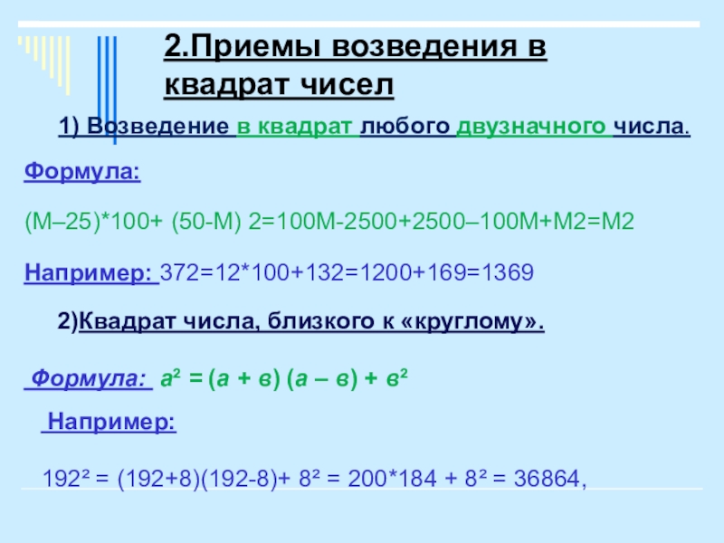 192² = (192+8)(192-8)+ 8² = 200*184 + 8² = 36864,