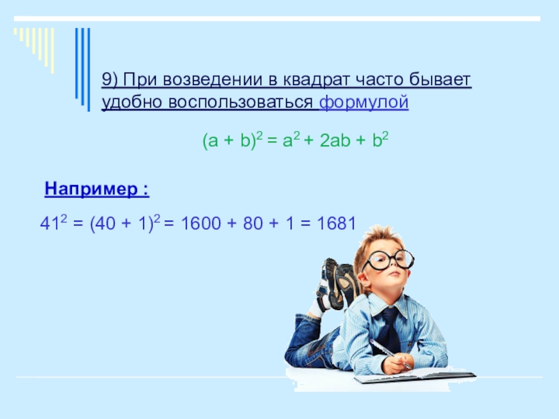 412 = (40 + 1)2 = 1600 + 80 + 1 = 1681