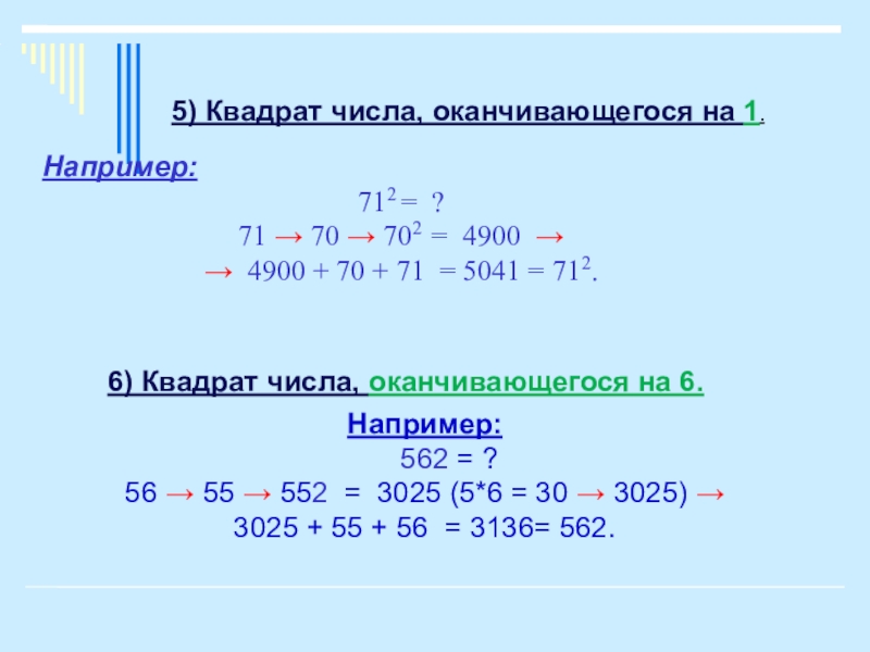 56 → 55 → 552 = 3025 (5*6 = 30 → 3025) →