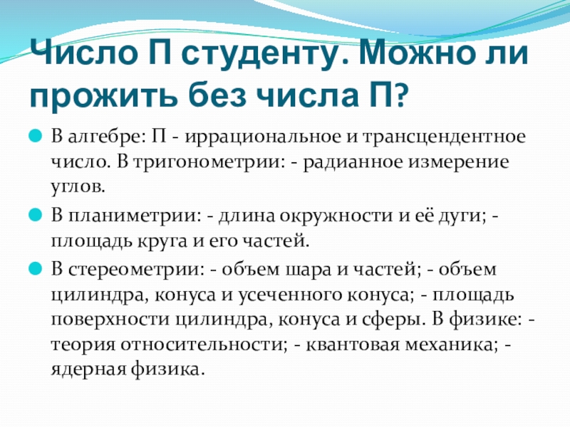 Слайд 25Число П студенту. Можно ли прожить без числа П?