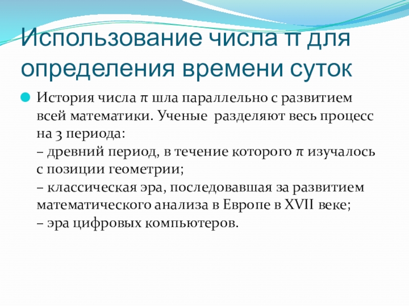 – древний период, в течение которого π изучалось с позиции геометрии;