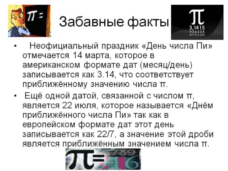 Примечательно, что в разное время происходило уточнение значения числа Пи.