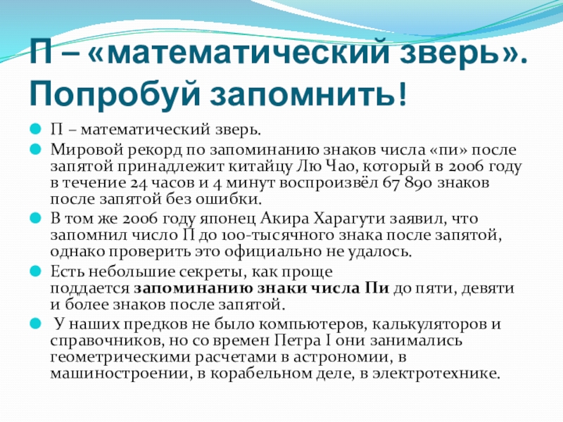 Слайд 30П – «математический зверь». Попробуй запомнить!