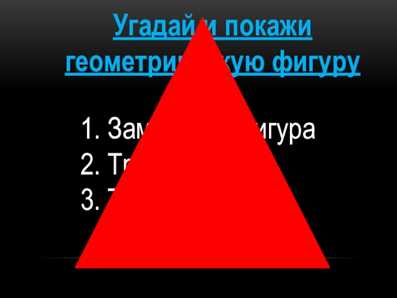 1. Замкнутая фигура2. Три вершины3. Три стороныУгадай и покажи геометрическую фигуру