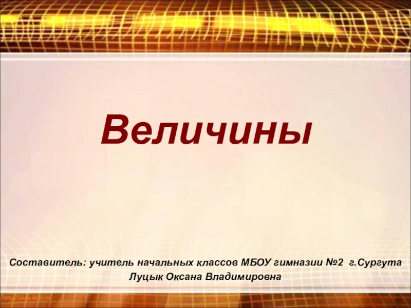ВеличиныСоставитель: учитель начальных классов МБОУ гимназии №2 г.СургутаЛуцык Оксана Владимировна