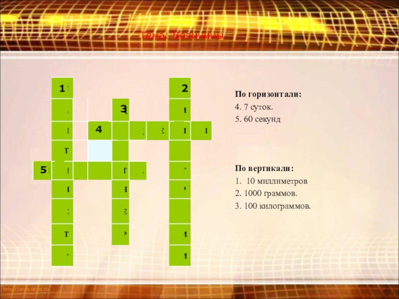 Презентация, доклад к предметному модулю Время и числовая информация Величины