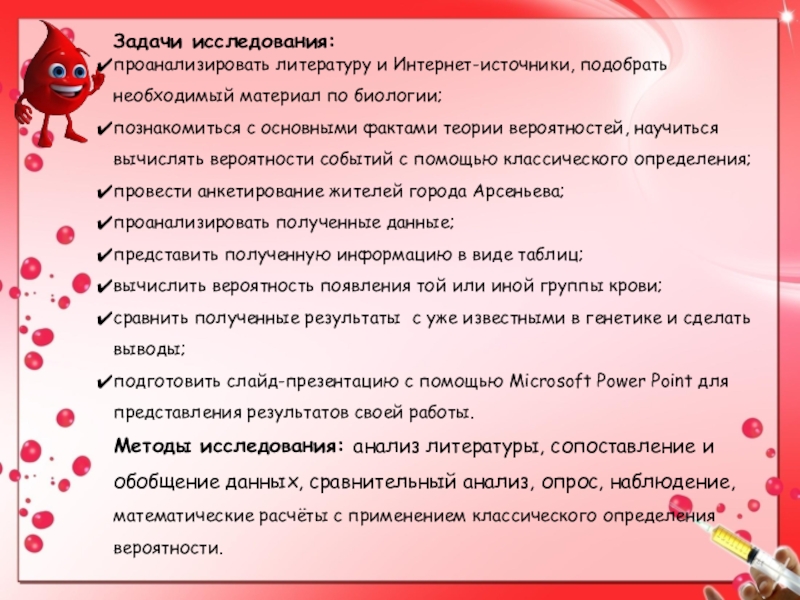 Цель исследования: сравнить данные о наследовании групп крови, взятые из информационных источников с данными, полученными опытным путем и в результате математических расчётов.