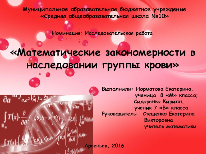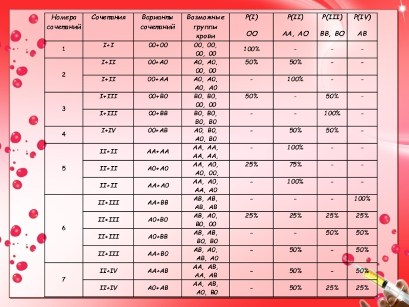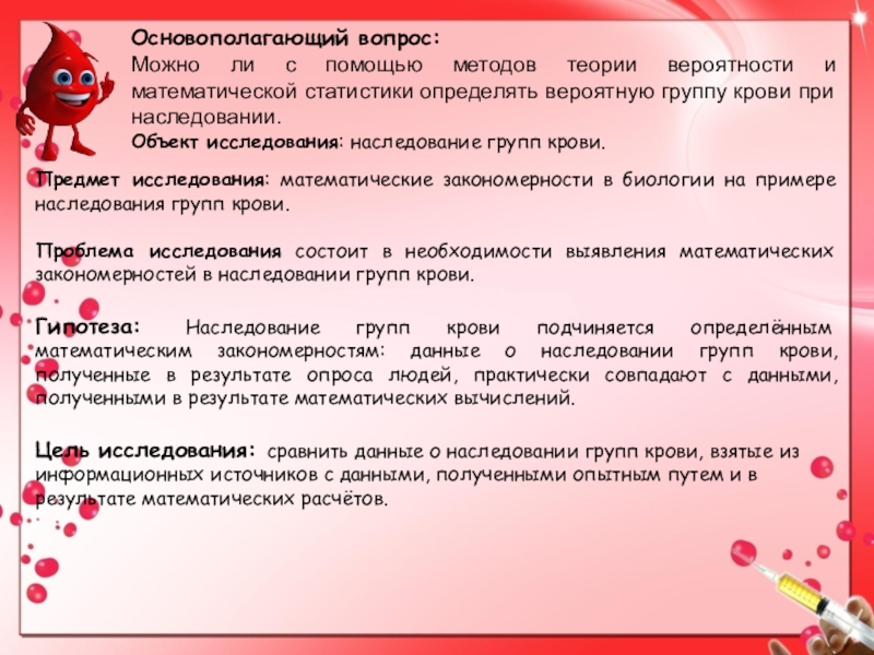 Предмет исследования: математические закономерности в биологии на примере наследования групп крови.