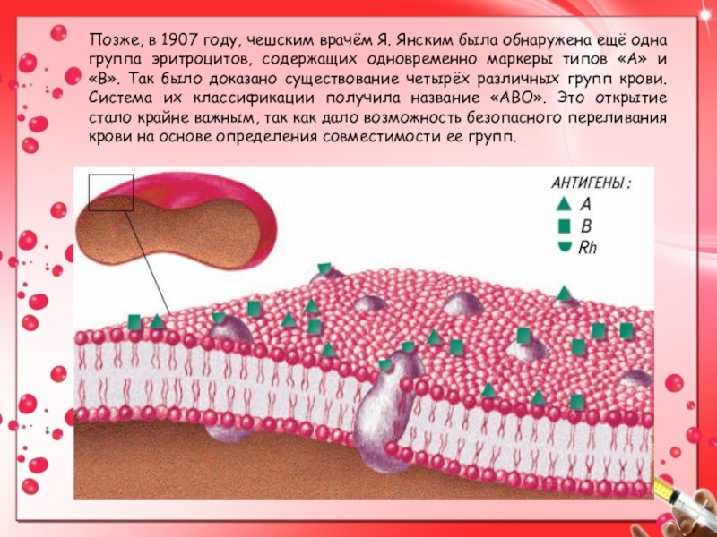 Группа крови определяется наличием или отсутствием двух антигенов А и В на поверхности эритроцитов и антител α и β к ним в плазме крови.