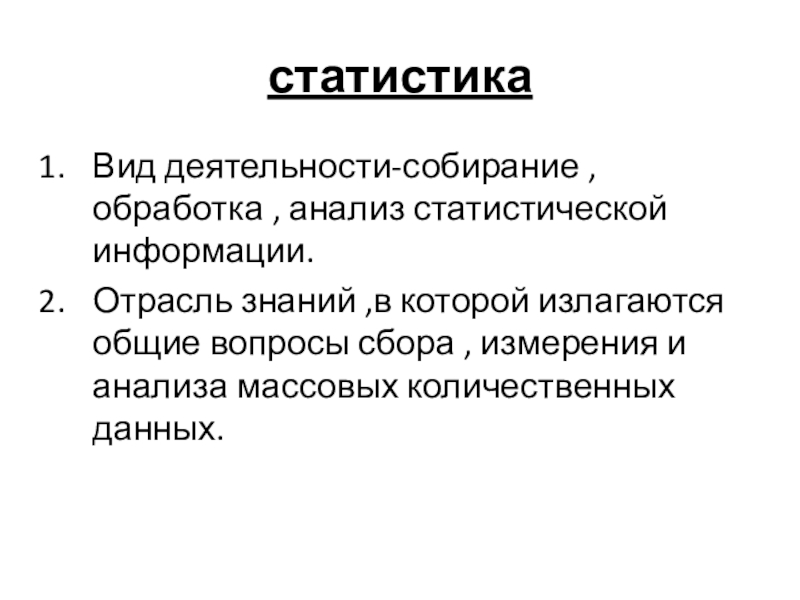 Вид деятельности-собирание , обработка , анализ статистической информации.