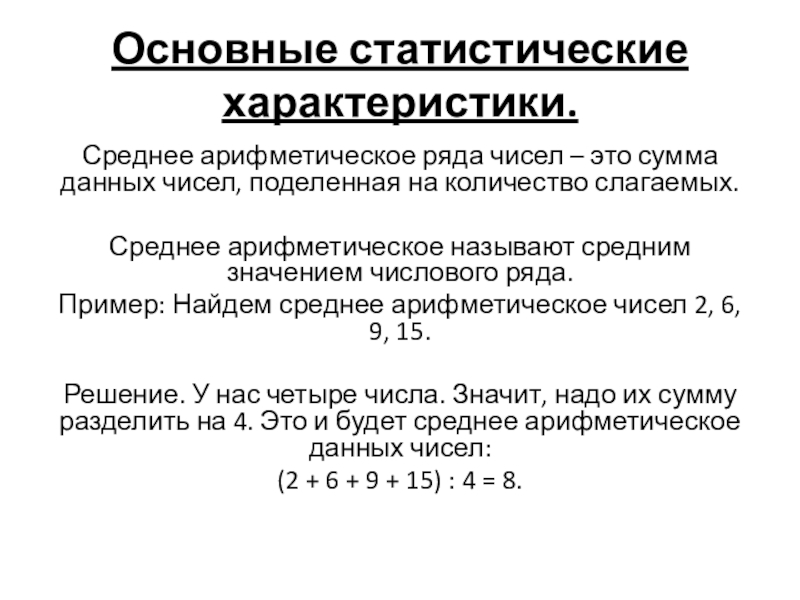 Среднее арифметическое ряда чисел – это сумма данных чисел,