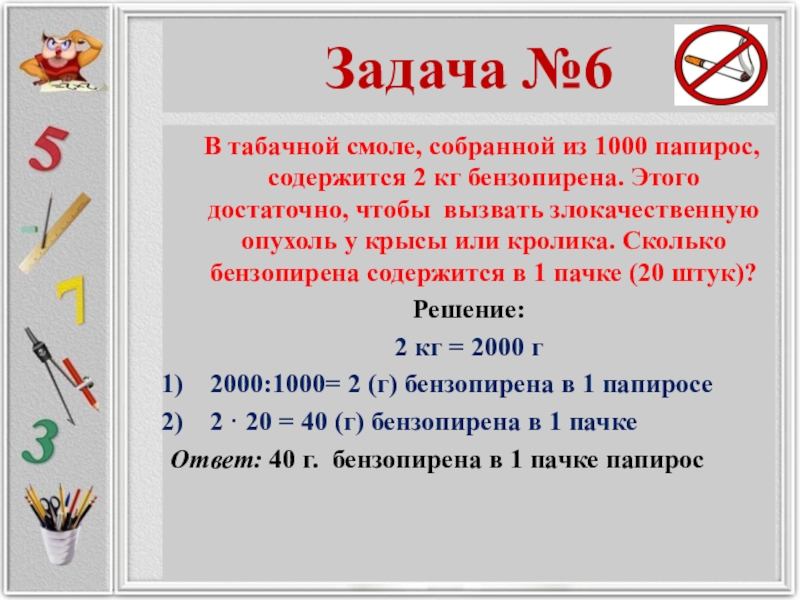 2 · 20 = 40 (г) бензопирена в 1 пачке