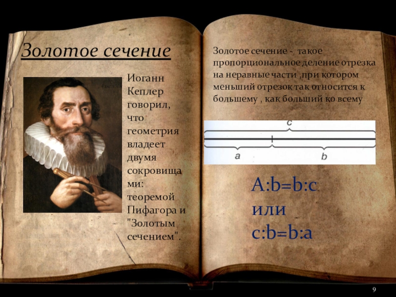 Золотое сечение - такое пропорциональное деление отрезка на неравные части ,при котором меньший отрезок так относится к большему , как больший ко всему