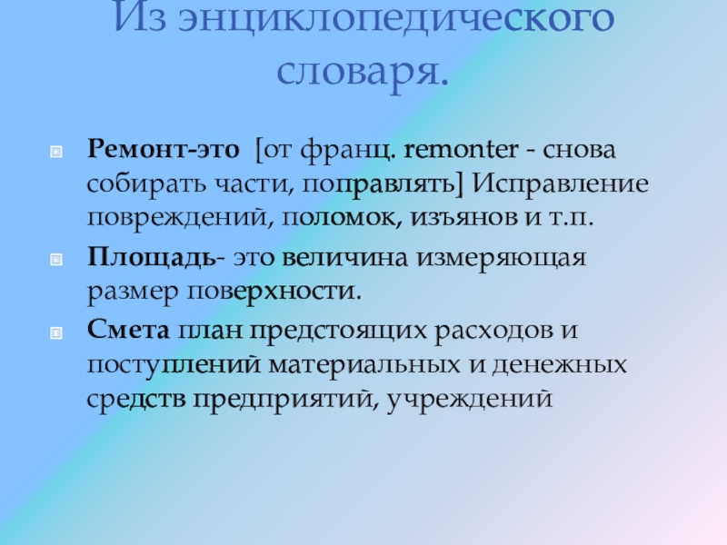 Ремонт-это [от франц. remonter - снова собирать части, поправлять]