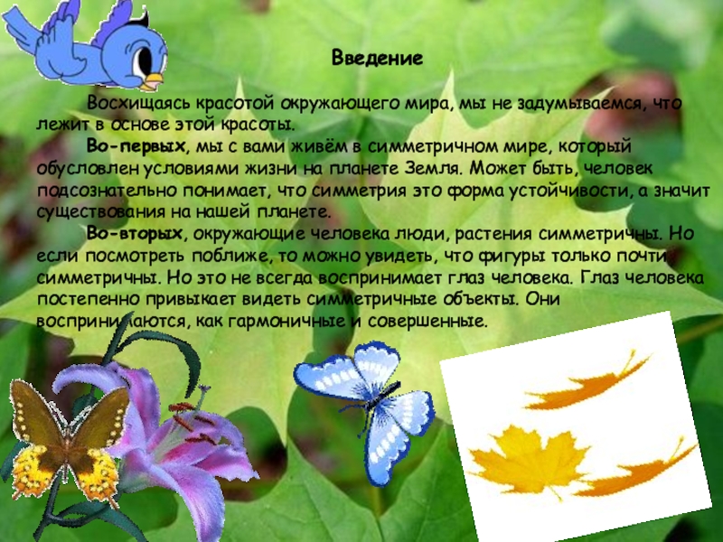 Природа удивительный творец и мастер. Всё живое в природе обладает свойством симметрии.