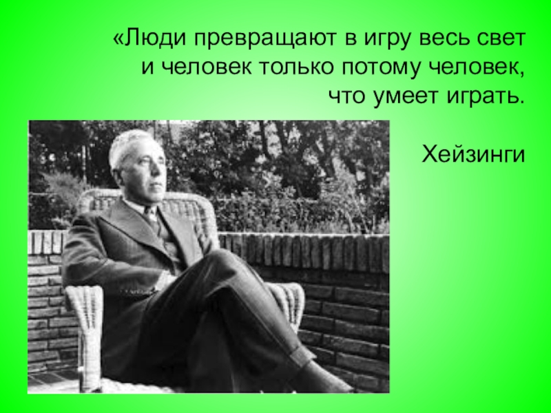 «Люди превращают в игру весь свет и человек только потому человек, что умеет играть.Хейзинги