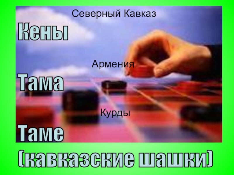 Слайд 14Кены Тама Таме (кавказские шашки)