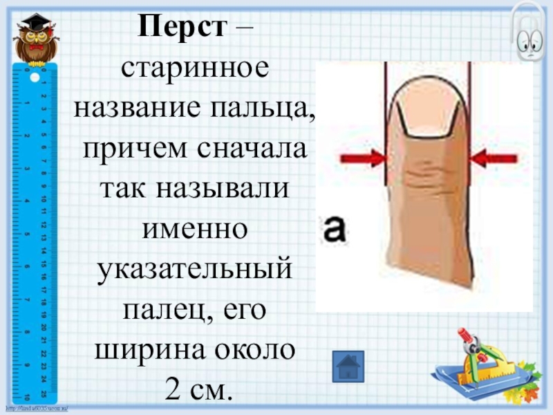 Перст – старинное название пальца, причем сначала так называли именно указательный палец, его ширина около  2