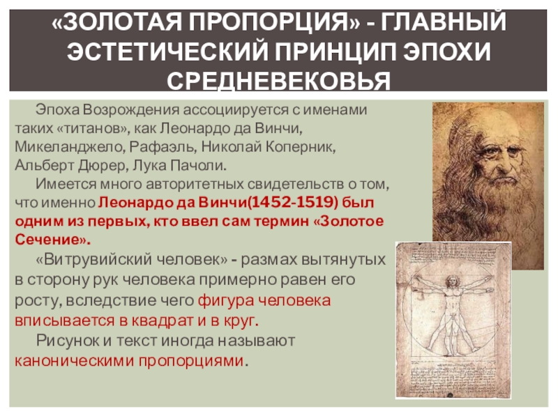 «ЗОЛОТАЯ ПРОПОРЦИЯ» - ГЛАВНЫЙ ЭСТЕТИЧЕСКИЙ ПРИНЦИП ЭПОХИ СРЕДНЕВЕКОВЬЯ