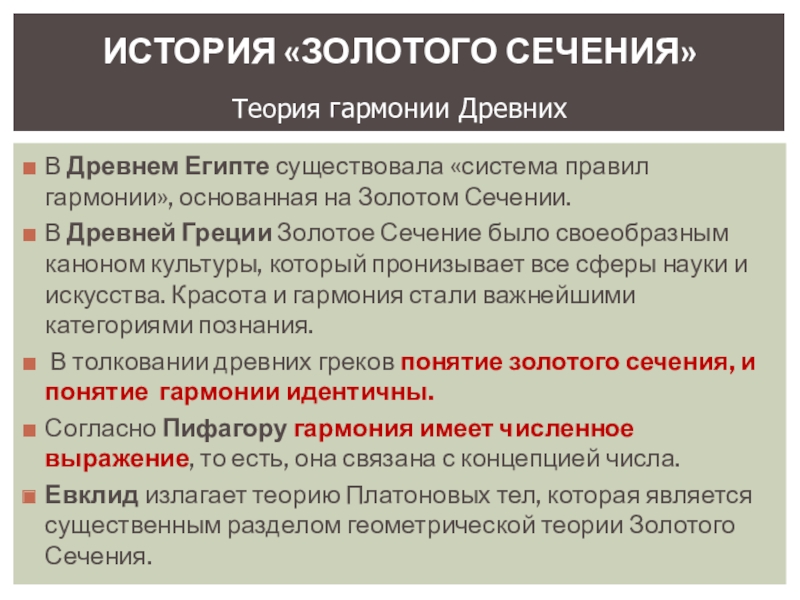 ИСТОРИЯ «ЗОЛОТОГО СЕЧЕНИЯ»