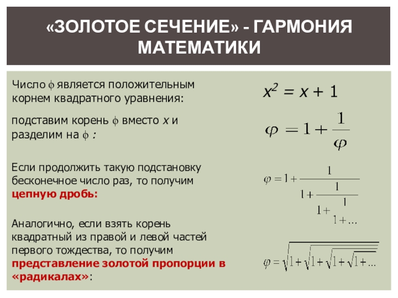 «ЗОЛОТОЕ СЕЧЕНИЕ» - ГАРМОНИЯ МАТЕМАТИКИ