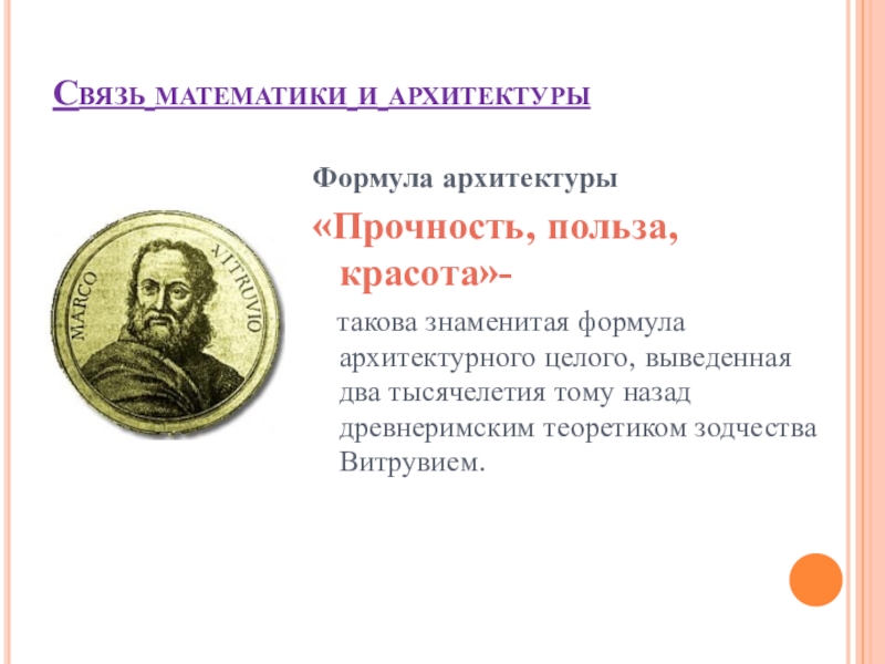 формула архитектурного целого, выведенная два тысячелетия тому назад древнеримским теоретиком зодчества Витрувием.