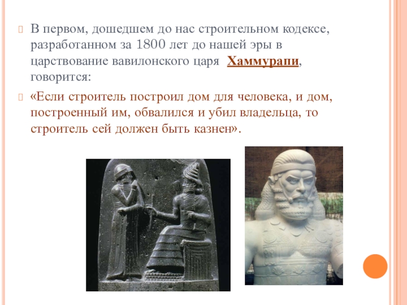 Слайд 12В первом, дошедшем до нас строительном кодексе, разработанном за 1800 лет