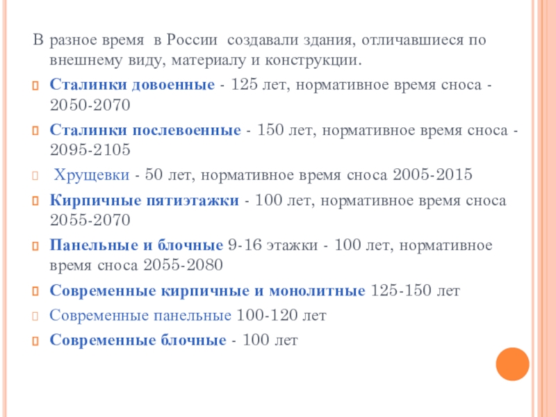 Сталинки послевоенные - 150 лет, нормативное время сноса - 2095-2105