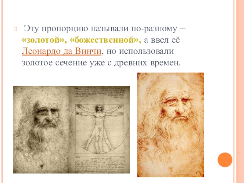 Леонардо да Винчи, но использовали золотое сечение уже с древних времен.