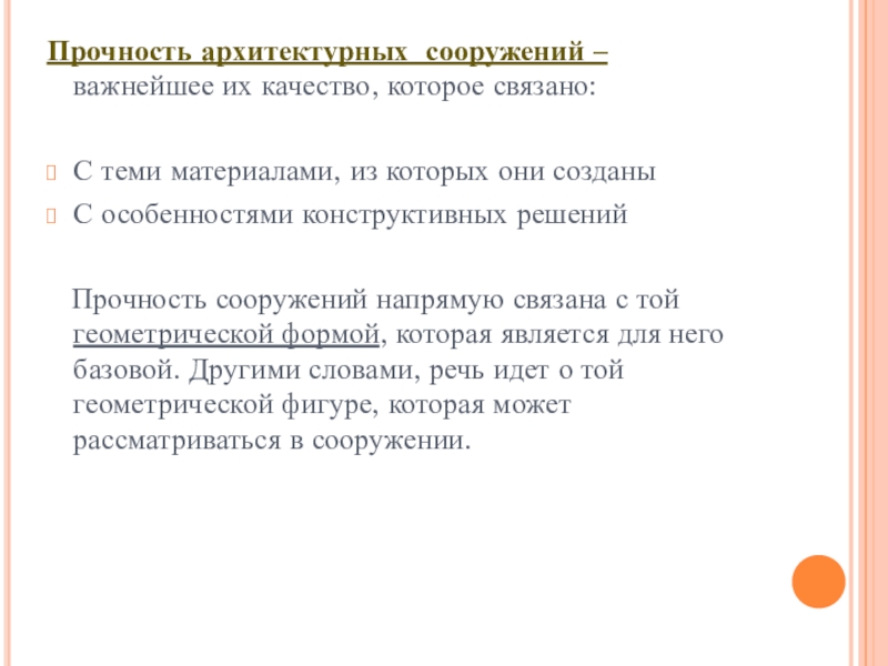 Слайд 11Прочность архитектурных сооружений – важнейшее их качество, которое связано: