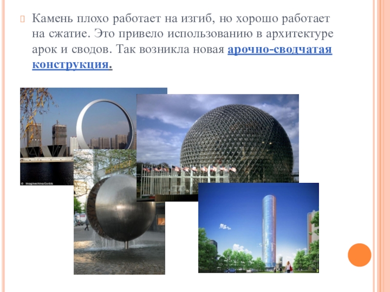 Слайд 17Камень плохо работает на изгиб, но хорошо работает на сжатие. Это