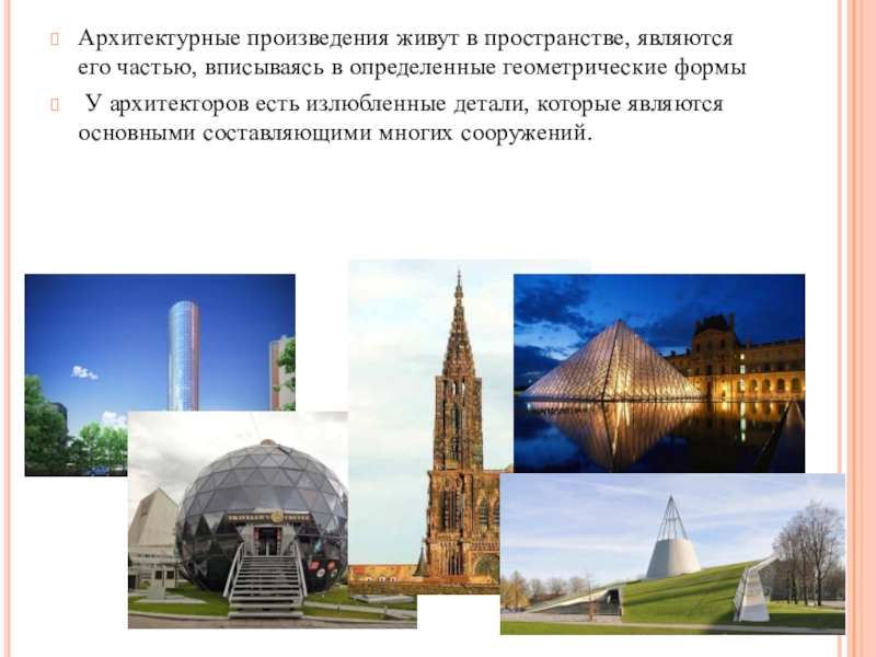 Слайд 23Архитектурные произведения живут в пространстве, являются его частью, вписываясь в определенные