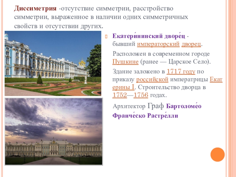 Слайд 35Диссиметрия -отсутствие симметрии, расстройство симметрии, выраженное в наличии одних симметричных свойств
