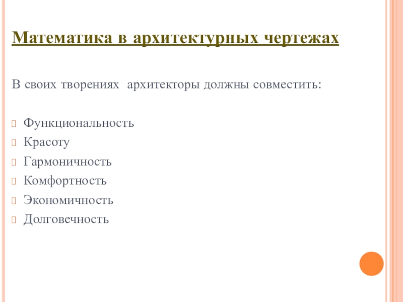 Слайд 1 Архитектура – застывшая математика в пространстве.
