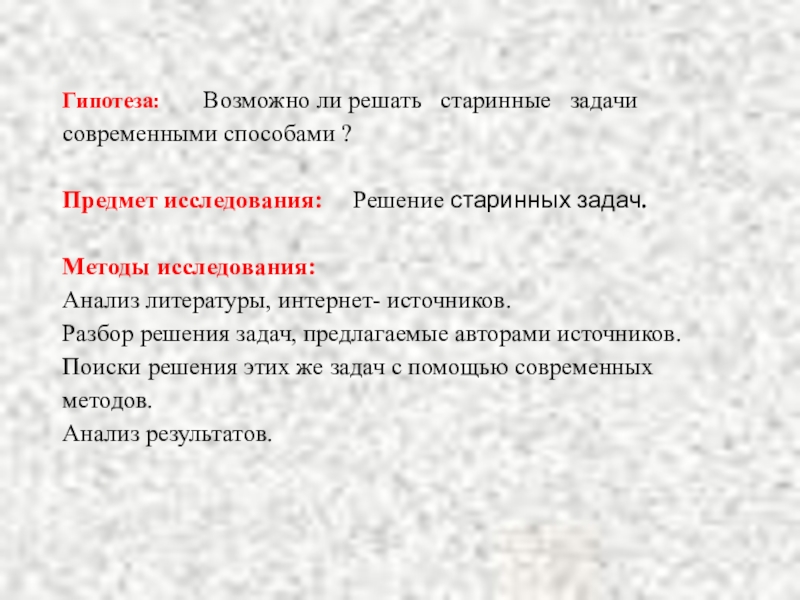 Предмет исследования: Решение старинных задач.