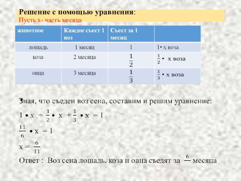 За какое время лошадь, коза и овца вместе съедят такой же воз сена?
