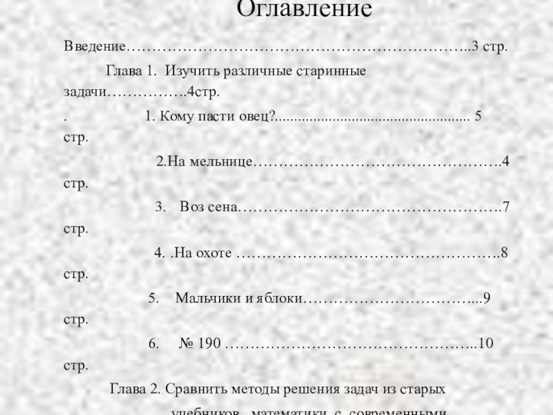 старинные задачи…………….4стр.