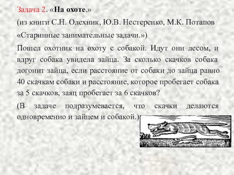 Слайд 12Задача 2. «На охоте.»