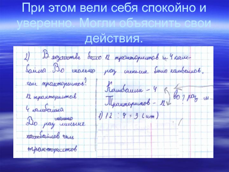 При этом некоторые ученики отказывались от продолжения решения задач. Эти отказы проявлялись в демонстрации безучастия к заданию и попытках отвлечь других учеников на постороннюю деятельность. Следует отметить, что эти дети вели себя так не на протяжении всего выполнения задания, а только в ситуации затруднения, когда решение заходило в тупик.