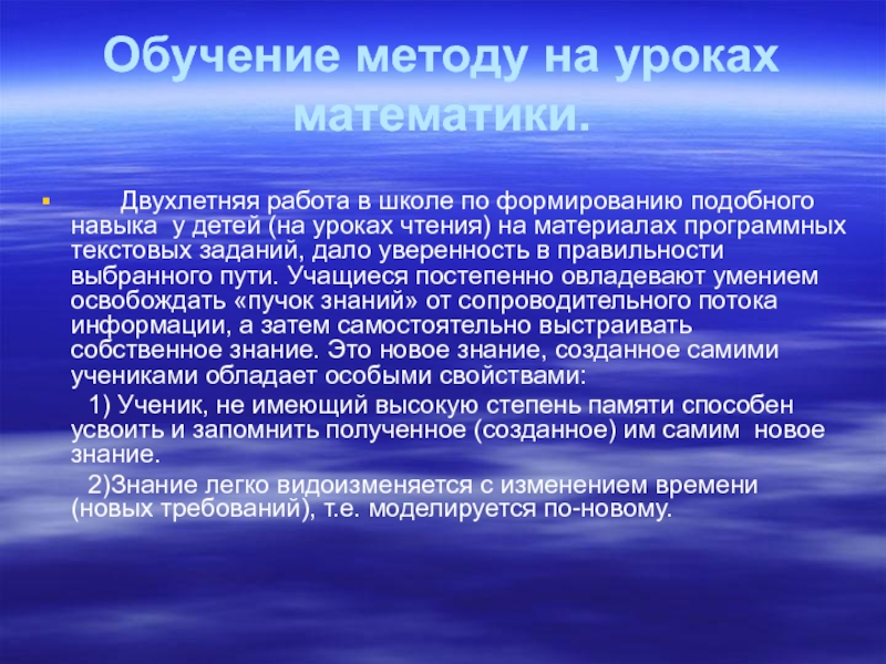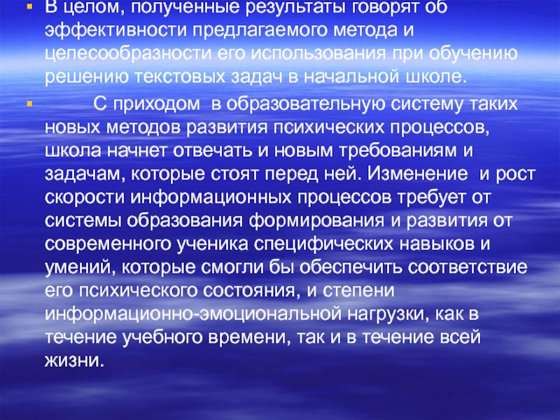 Пробы использовать описанный метод на уроках математики да еще не в индивидуальной работе, а в групповой дают достаточно медленный, но позитивный результат. Самым сложным для детей является перейти от текста задачи к ее краткой записи.