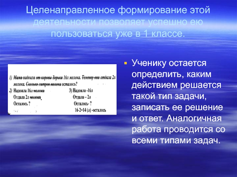 Ученику остается определить, каким действием решается такой тип задачи, записать ее решение и ответ. Аналогичная работа проводится со всеми типами задач.