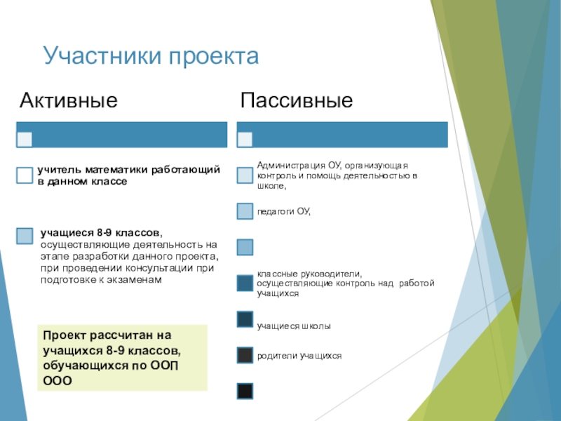 Проект предназначен для учителей математики и, учащихся 8-9 классов, педагогов работающих по этому предмету