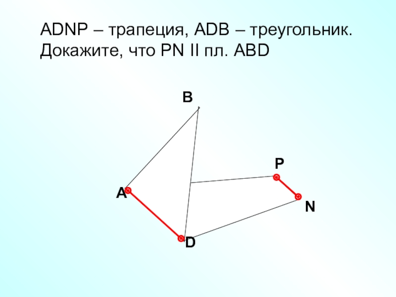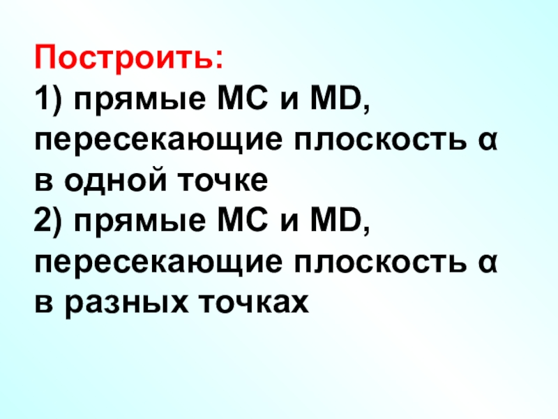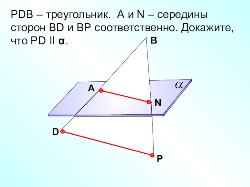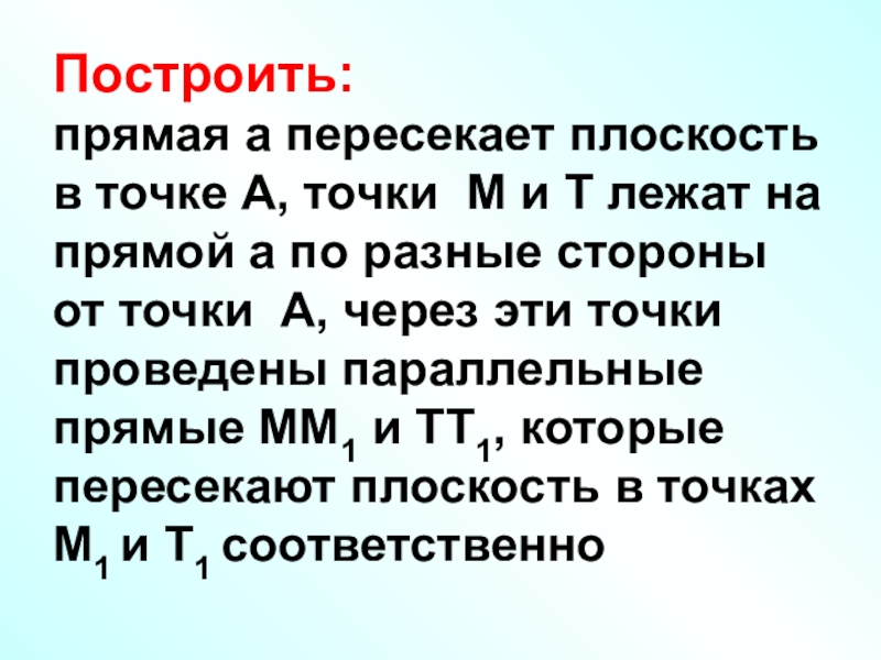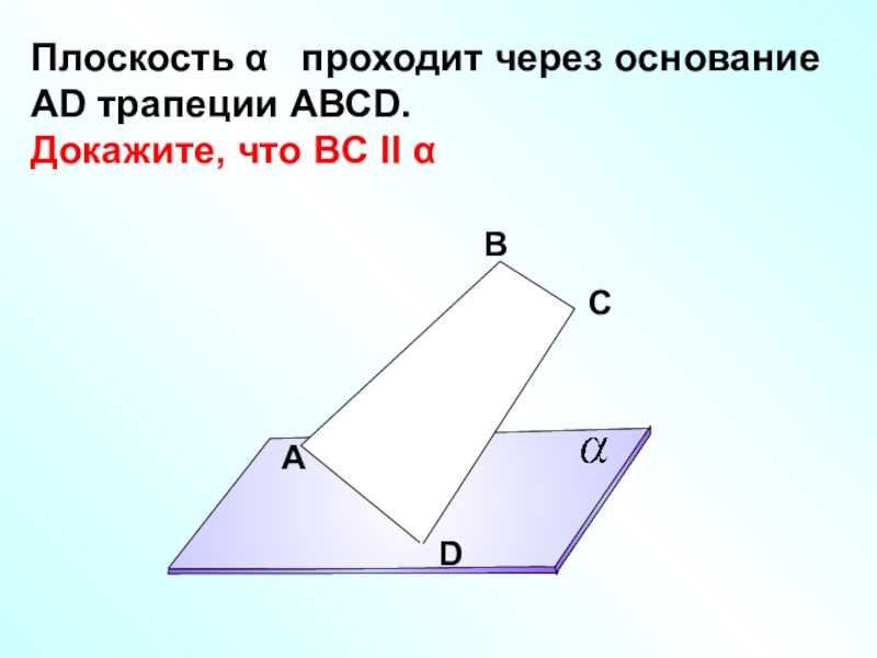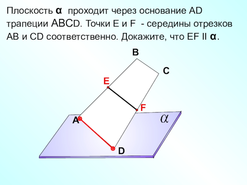 Если прямая не лежащая в данной плоскости, параллельна какой-нибудь прямой, лежащей в этой плоскости, то она параллельна этой плоскости.