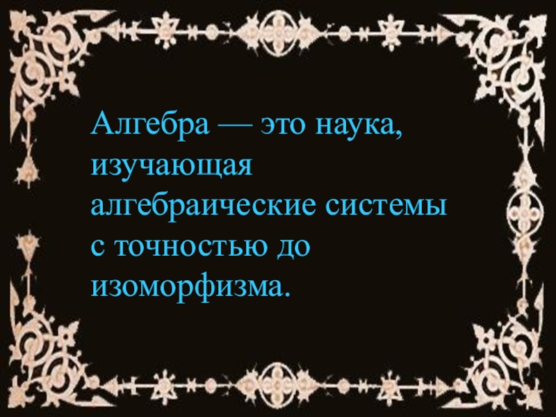 Алгебра — это наука, изучающая алгебраические системы с точностью до изоморфизма.