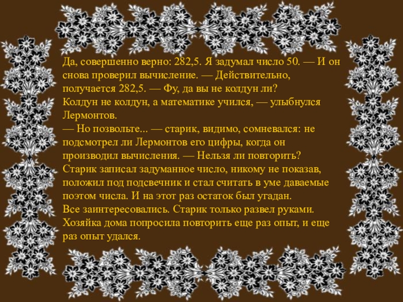 Да, совершенно верно: 282,5. Я задумал число 50. — И он